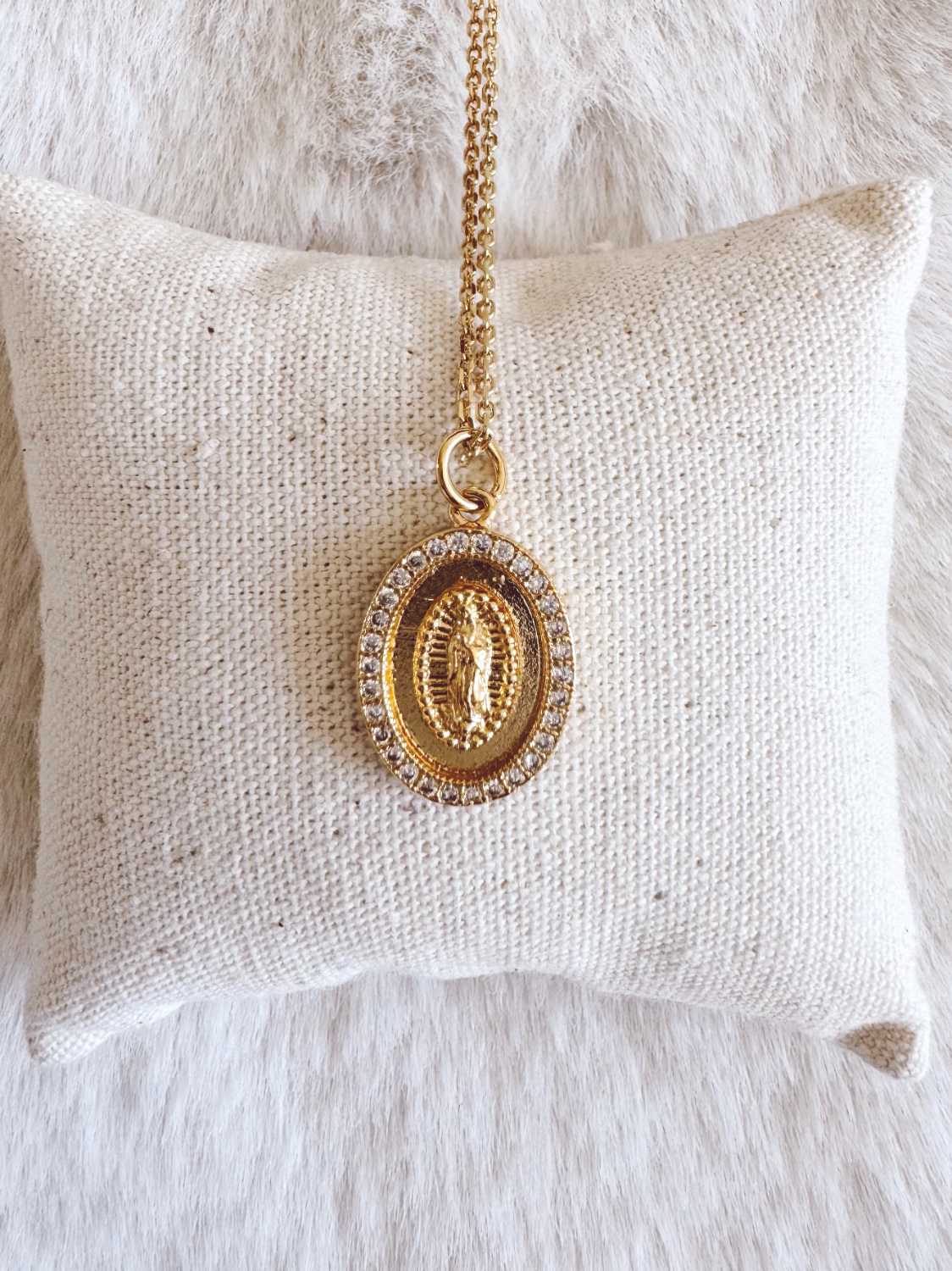 Cette médaille dorée incarne une présence douce et intemporelle.